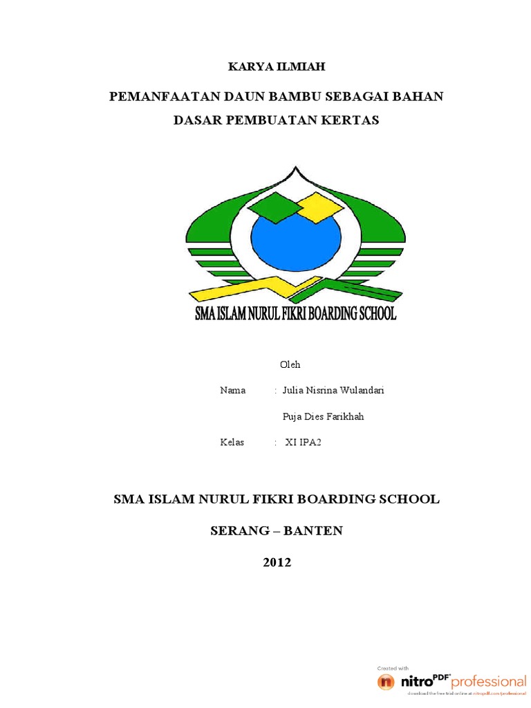 Pemanfaatan Daun Bambu Sebagai Bahan Dasar Pembuatan Kertas Pdf